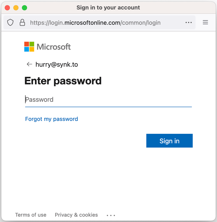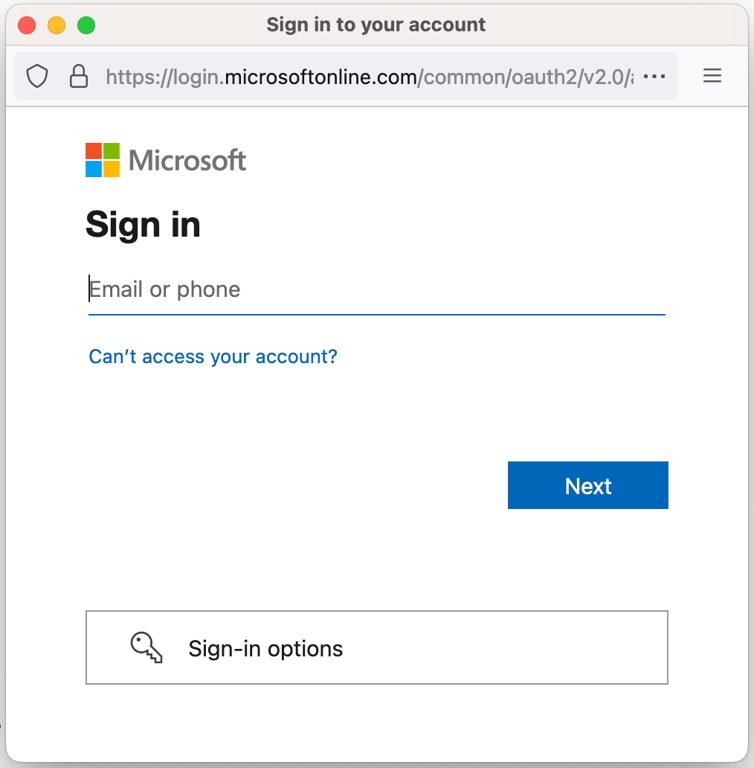 - In a pop-up Microsoft window, sign in using your Azure AD account with Global Administrator or Administrator role.