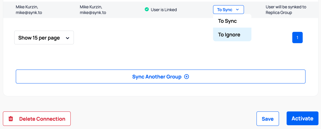 - Click “Activate” to launch users synchronization.